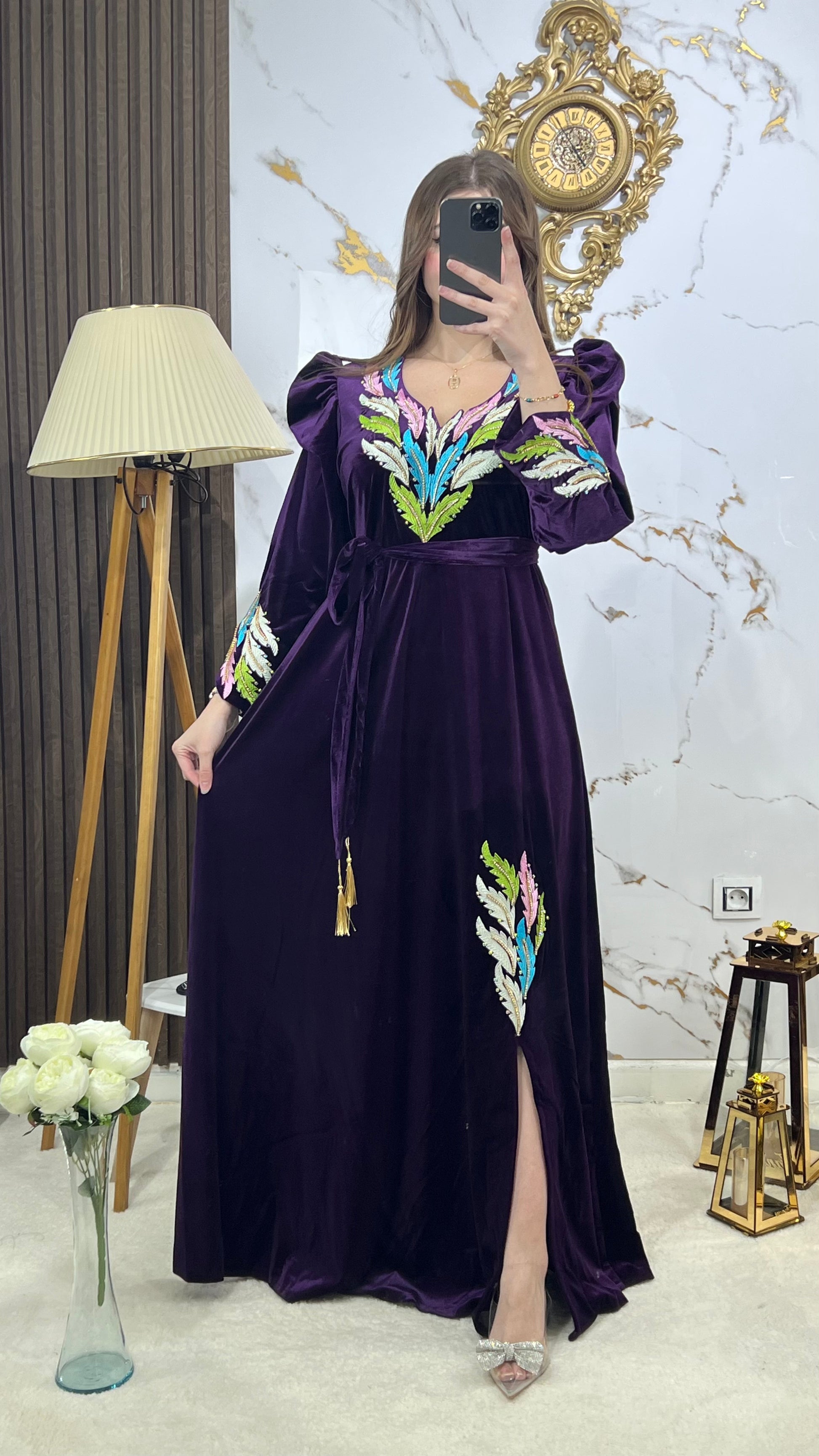 مع مودال الريشة المصنوعة من قطيفة روايال خفيفة وتطريز فاخر بدقة عالية، تحصلي على إطلالة فخمة تخطف الأنظار. الألوان الراقية واللمسة الأنيقة يخلوك متألقة في السهرات والمناسبات الخاصة، مع راحة في اللبس وأناقة تبان في كل تفصيل.